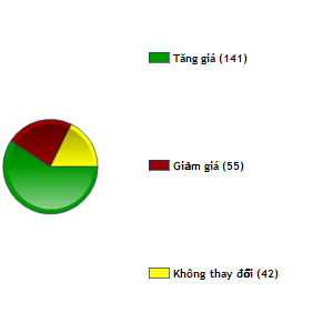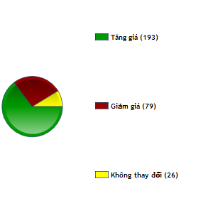 Xét theo giá trị thay đổi thì phiên này BT6 tăng mạnh nhất với 3.500 đ/CP đưa giá cổ phiếu này lên 81.500 đ/CP. DVD và KSS đều tăng 3.000 đ/CP với mức giá lần lượt là 138.000 và 68.000 đ/CP, DXG và ASM cùng tăng 2.500 đ/CP lên 80.000 và 53.500 đ/CP…