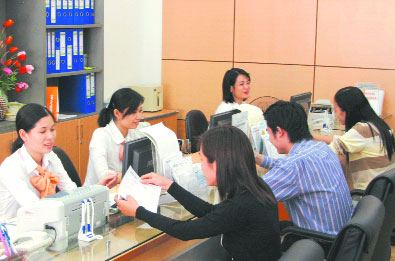 Khách hàng giao dịch tại Ngân hàng TMCP An Bình (ABBank). Ảnh: Linh Tâm