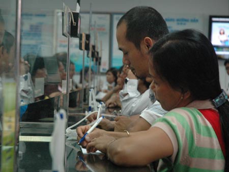 Theo các chuyên gia, không nên duy trì quá lâu trần lãi suất tiết kiệm. Trong ảnh: Khách hàng gửi tiết kiệm tại ACB. Ảnh: H.Thúy |