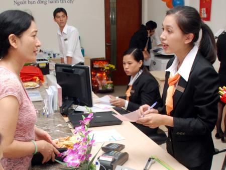 | Khách hàng giao dịch tại ngân hàngẢnh: TẤN THẠNH |