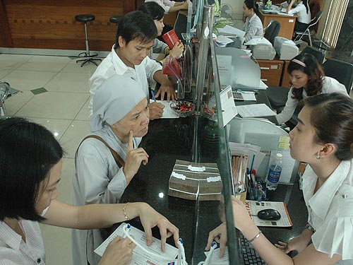 Khách hàng gửi tiết kiệm tại Ngân hàng Đại Á. Ảnh: HỒNG THÚY