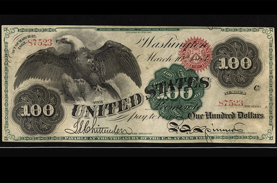 Trong thời Nội chiến, cả hai phe miền Bắc và miền Nam đều phát hành tiền giấy để có tiền chi cho cuộc chiến, dù tiền in ra không được bảo đảm bằng vàng hay bạc. Đây là tờ 100 Đô la do phe miền Bắc phát hành năm 1863.