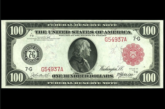 Hệ thống Dự trữ Liên bang Mỹ đi vào hoạt động vào năm 1913 khi đạo luật Cục Dự trữ Liên bang được thông qua. Vào năm 1914, FED phát hành đồng tiền đầu tiên, bao gồm tờ bạc 100 Đô la này.