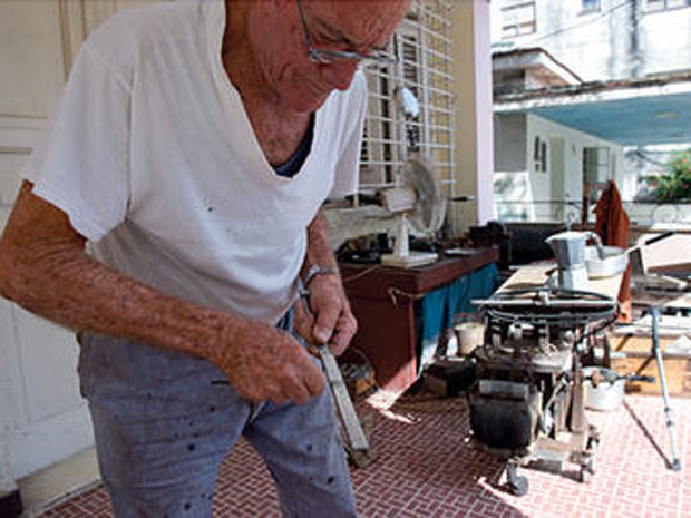 ![]() Ông Manuel Fernandez, một viên chức về hưu được nhận giấy phép mở tiệm sửa chữa nhỏ tại Havana. Ảnh: csmonitor |