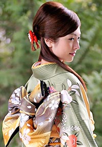 | Thiếu nữ Nhật trong trang phục kimono. |