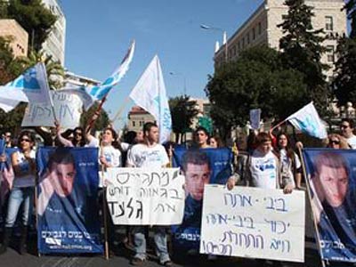 Dân chúng Israel mang ảnh Gilad Shalit biểu tình trước nhà riêng