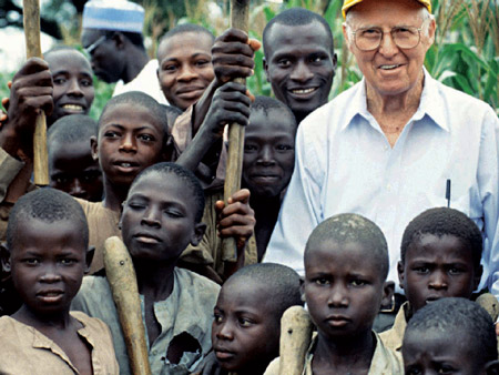 Norman Borlaug cùng trẻ em và nông dân ở châu Phi |
