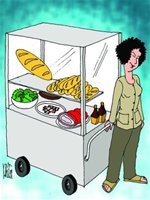 Tôi nhìn cái xe mới của ba chị em, một cái xe đẩy có tủ kính giống như xe bán bánh ngọt nhan nhản trong thành phố mà nhớ chiếc xe cũ, chiếc “xe tự chế” theo cách nói bây giờ. Một thùng kính vuông nằm trên hai bánh xe phía trước để nào thịt nguội, patê, jambon bên trên; bánh mì trong thùng phía dưới, kế mẻ than vụn để ủ nóng, giữ độ giòn. Phía sau là yên xe cao lênh khênh để người bán ngồi lên đạp đi.