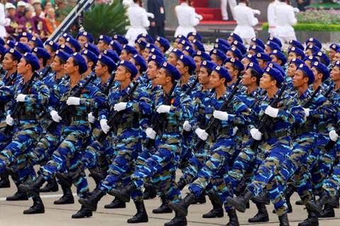 Phần diễu binh có sự tham gia gồm 17 khối quân đội, công an, dân quân tự vệ thực hiện diễu binh: