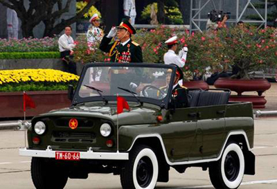 Trung tướng Nguyễn Văn Thành, Phó Tổng tham mưu trưởng Quân đội nhân dân Việt Nam - Anh hùng lực lượng vũ trang dẫn đầu đội hình diễu binh tiến vào Lễ đài